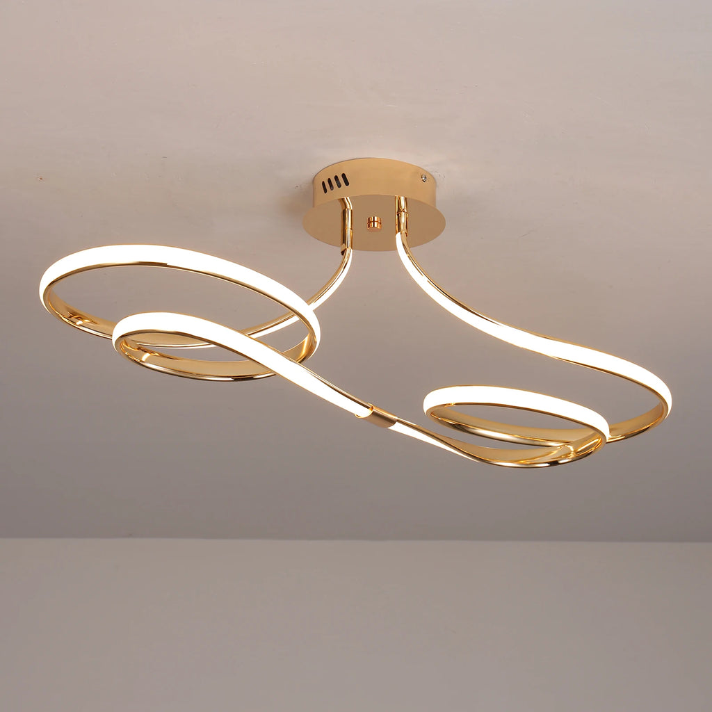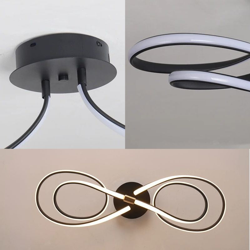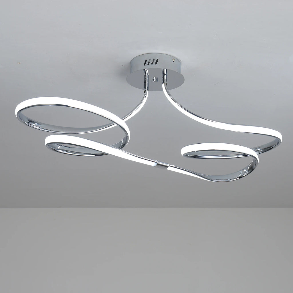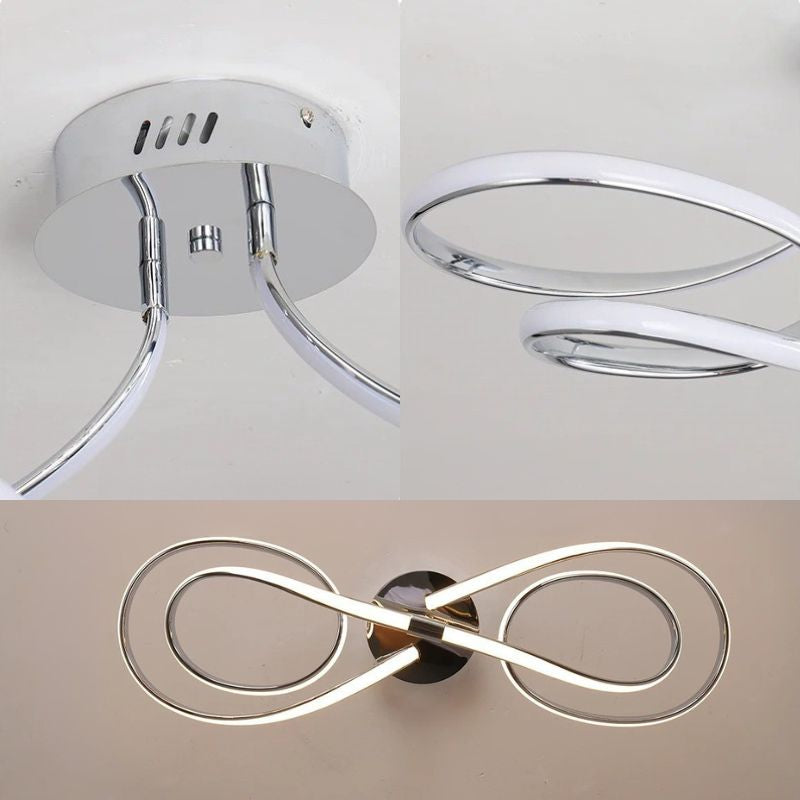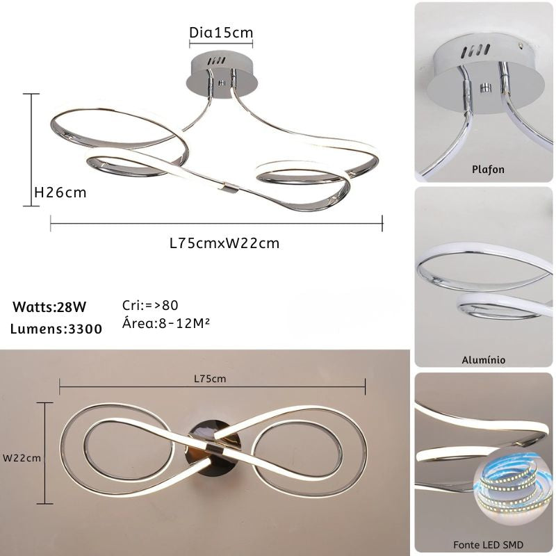 Suas curvas contínuas criam uma sensação de movimento leve e elegante, como uma linha luminosa que flui pelo espaço.