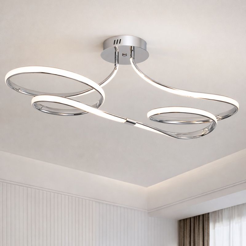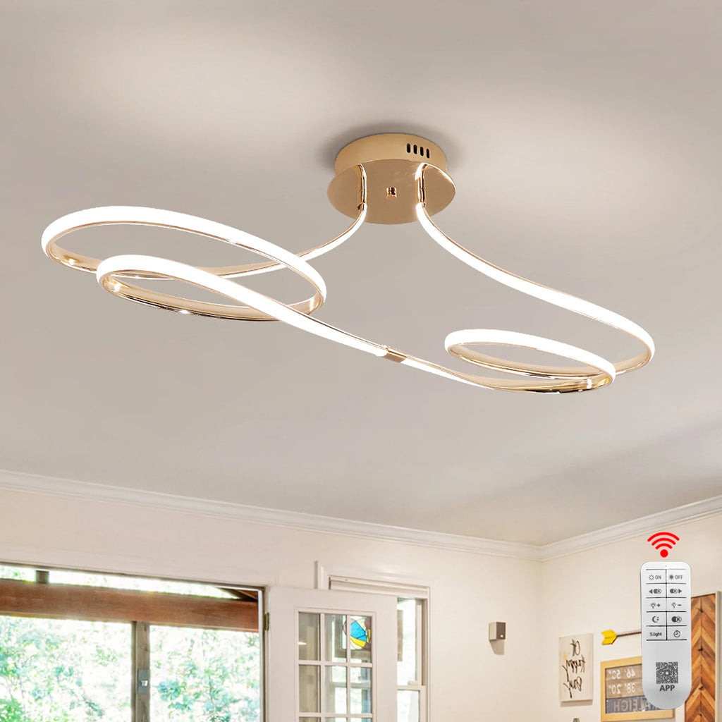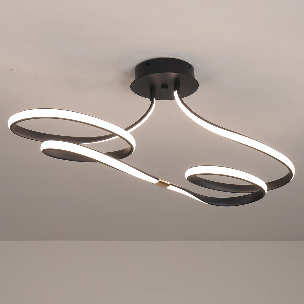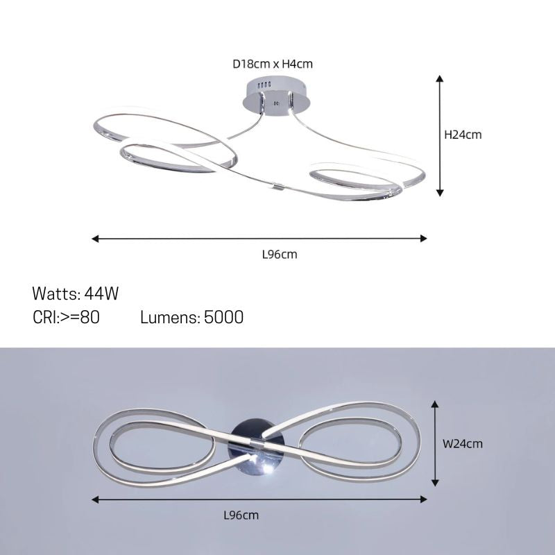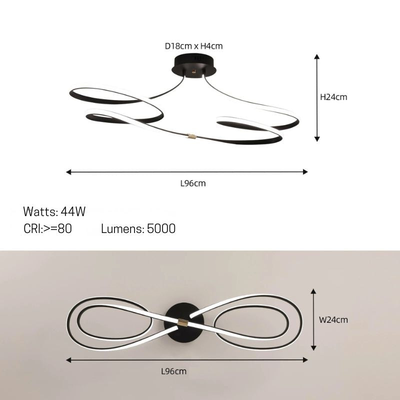 Suas curvas contínuas criam uma sensação de movimento leve e elegante, como uma linha luminosa que flui pelo espaço.